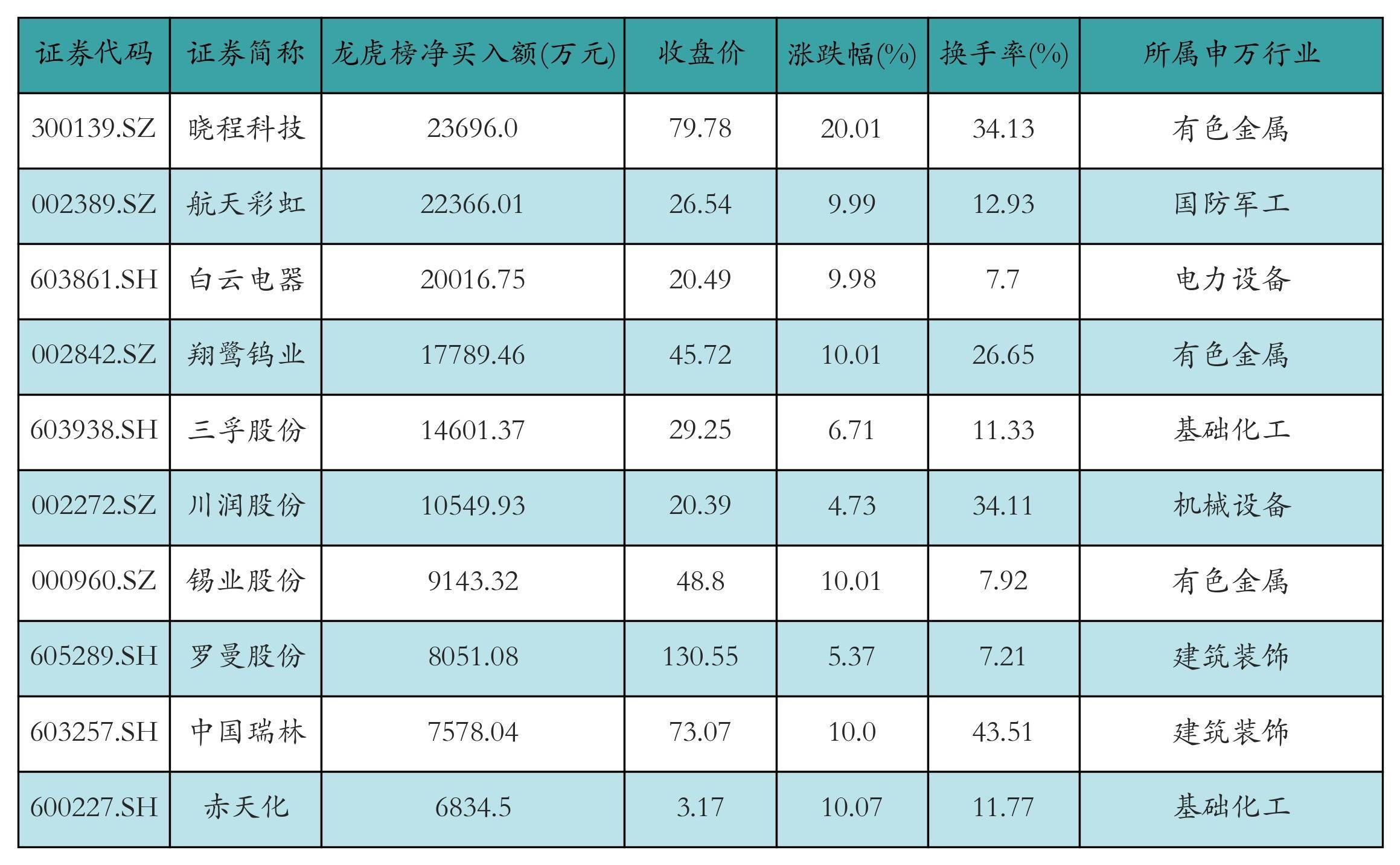 昨日龙虎榜营业部净买入额前10详情见下表: