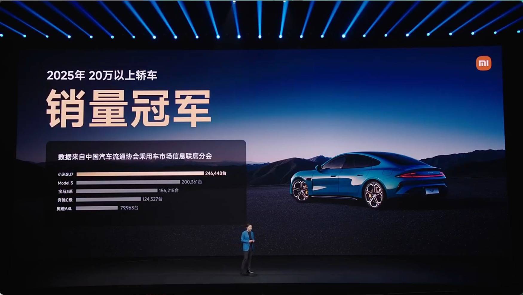 在市场端与行业影响力方面,雷军列举了小米SU7的具体交付成绩 。该车型不仅创下了发布近24小时大定破8万台的数据表现 ,其年度销量更实现了对特斯拉Model 3的反超 ,并分别达到同级别宝马3系的1.6倍、奔驰C级的2倍及奥迪A4L的3倍 。据其透露,小米造车五年累计投入资金超过400亿元 。