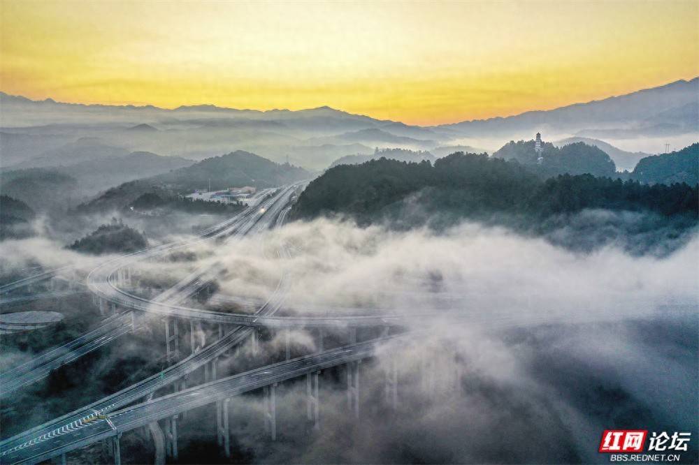 靖州苗族侗族自治县文峰塔景区近日迎来冬日晨雾。山间云海翻涌,如轻纱缭绕,古朴的文峰塔矗立其间,宛若“浮”于云端的一颗明珠。远处,高速公路蜿蜒穿梭炒股配资开户,桥隧交错,在缥缈的云海中若隐若现。现代交通动脉与千年苗乡的人文地标遥相呼应,彼此映衬,共同勾勒出一幅既充满诗意又生机盎然的靖州山水画卷。(图文/许志国)